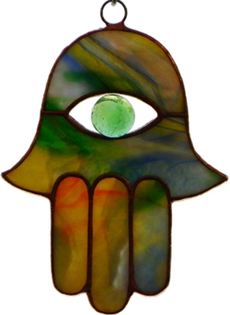 A obra abaixo, intitulada “Eye in Hand” (“Olho na mão”), incorpora os traços de identidades surdas e judaicas da artista: “o formato da mão é retirado de um síbolo judaico chamado Hamsa. Este protege de mau-olhados. (…) Na cultura Surda, mãos e olhos são vitais para a ASL, nossa língua”, afirma (retirado de seu blog).