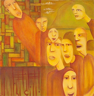 A obra abaixo, intitulada “Hitler, Bell and Ling in Disguise” (“Hitler, Bell e Ling disfarçados”), faz alusão à Adolf Hitler (e suas políticas de eugenia e eliminação da surdez), Alexander Graham Bell (e sua defesa do oralismo e da proibição das línguas de sinais na educação de surdos) e Daniel Ling (oralista canadense, criador de métodos de ensino de fala e treinamento auditivo usados em diferentes países): representados como espíritos malignos, verdes e com grandes orelhas, investem contra duas imagens sem orelhas (sujeitos surdos), observados por figuras angelicais a olharem consternadas para o que acontece.