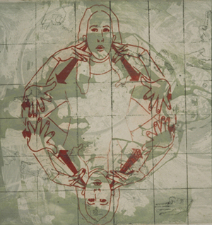 Em suas obras, Randy Garber explora a linguagem, a percepção e as formas como símbolos/significados são interpretados. A artista, que quando criança encantava-se ao ver o pai gravar letras e imagens em pequenos metais preciosos, retrata com muita maestria, em vários suportes (gravuras, pinturas, etc.), a imprevisibilidade da comunicação. “Eu cresci com uma séria perda auditiva, em uma névoa de sons ininteligíveis. Por ironia, na quarta-série tive que abandonar as aulas de artes para estudar leitura orofacial. Hoje, como artista, transformo a minha reduzida capacidade auditiva em uma experiência visual por meio da alquimia da gravura” (retirado de Wynn Newhouse Awards, tradução nossa).