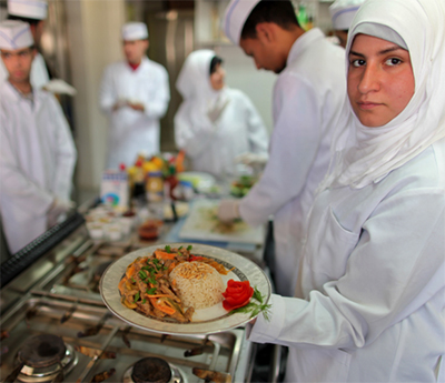 Coordenado pelo Atfaluna Society for Deaf Children (instituição local que mantém uma escola de surdos, além de vários programas direcionados às comunidades surdas), com o apoio da organização suíça Drosos Foundation, o projeto conta com uma equipe formada por chefs e empregados de mesa surdos que passaram por mais de seis meses de treinamentos (clique aqui, aqui e aqui para assistir a vídeos sobre o projeto) e hoje atendem a todos os tipos de clientes.