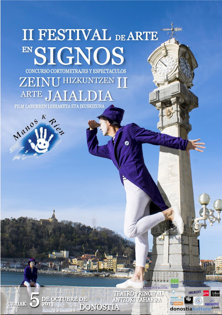 No dia 5 de outubro de 2013 acontecerá em Donostia (ou San Sebastián, em Castelhano), cidade localizada no País Basco (Espanha), o II Festival de Arte en Signos / Zeinu Hizkuntzen Arte Jaialdia. Organizado pela Asociación Artistico Cultural Manos k Rien, o evento contará com apresentações artísticas (poesias, clowns, canções traduzidas, etc.), concurso de curta-metragens em sinais e espetáculos teatrais. Para visualizar cartaz do evento, clique aqui; para saber mais informações, clique aqui.